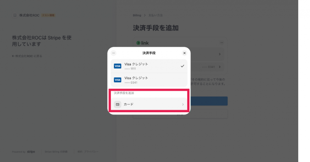 決済手段を追加の「カード」をクリックしてください。